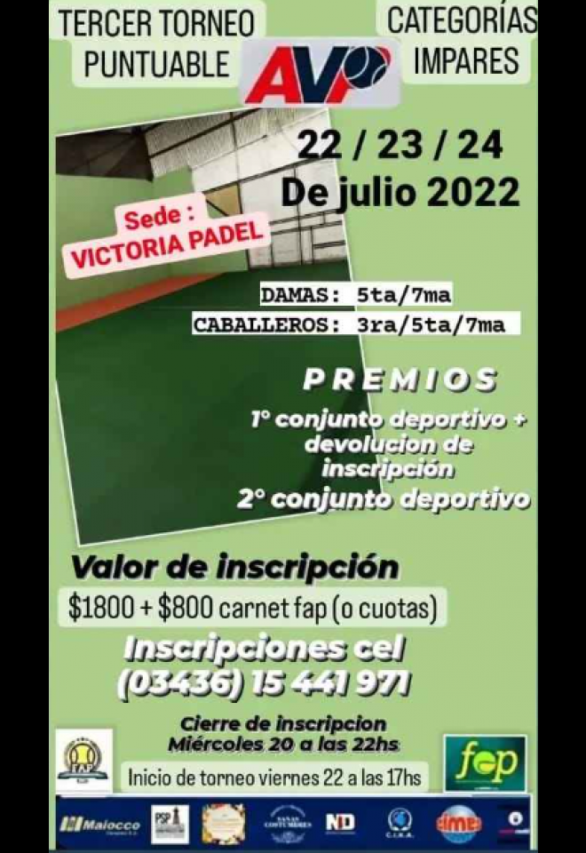 »» Evento: 3er Torneo Puntable - IMPARES »» Localidad: Victoria »» Fechas: 22/07/2022 al 24/07/2022
