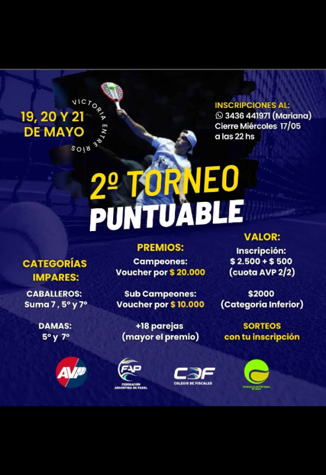 »» Evento: 2do Torneo Puntable IMPARES - 2023 »» Localidad: Victoria »» Fechas: 19/05/2023 al 21/05/2023
