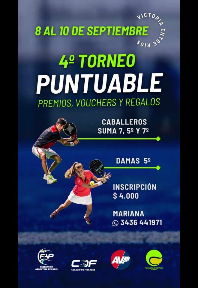 »» Evento: 4TO TORNEO PUNTUABLE-Impares »» Localidad: Victoria »» Fechas: 08/09/2023 al 10/09/2023